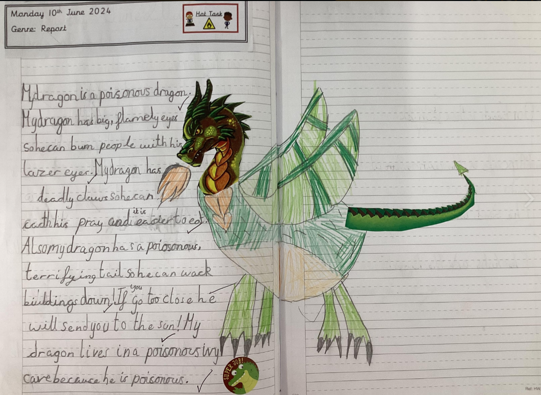 Writing is planned throughout our curriculum to enable our pupils to apply and present their ideas (an important life skill). Our children love writing in their Topic and Science lessons; in fact, they tell us that this is one of the main things that they love!