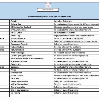 Personal development is threaded throughout the curriculum and life at Elms Farm Primary School. It offers the children the key knowledge and skills for them to make a positive impact on their lives and on their community. The aim of the Elms Farm curriculum is to develop ambitious pupils who acquire attributes such as self-confidence, risk-management, team-working and critical thinking.